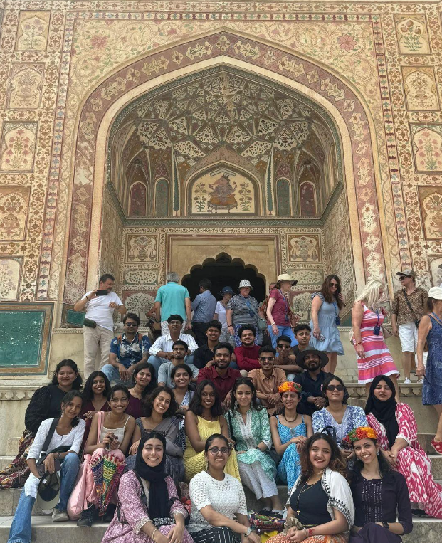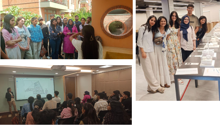 The 5th-semester architectural studio embarked on a study tour, beginning in Jaipur, where students explored prominent sites like Jawahar Kala Kendra, Pattrika Gate, Hawa Mahal, Jal Mahal, and Amer Fort. They had the opportunity to meet architect Dhruv Gupta, visit his residential project, and explore his Fort Restaurant. The group enjoyed local cuisine at Masala Chowk and observed traditional textile dyeing techniques. The tour continued in Delhi, where visits to the National Crafts Museum, Lotus Temple, Qutub Minar, Humayun's Tomb, and the vibrant markets of Sarojini Nagar and Dilli Haat offered deep insights into both traditional and contemporary architecture. The study tour provided students with a rich learning experience, blending cultural exploration with architectural knowledge.