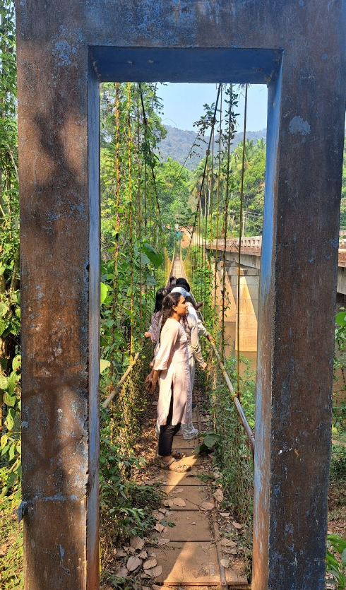 A highlight of the visit was the interaction with Padma Shri Girish Bharadwaj, popularly known as the “Bridge Man of India.” He personally guided the students through one of the suspension bridges he had constructed, explaining its design, materials, and structural detailing, offering valuable insights into his pioneering work in rural connectivity.