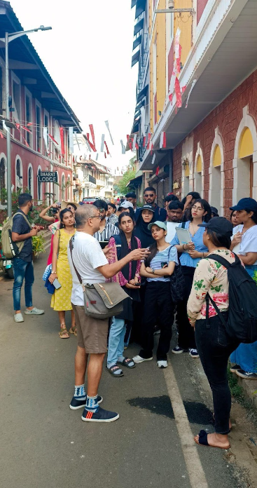 The Goa study trip for Semester 3 & 5 students of NIA offered an enriching architectural learning experience through direct observation of heritage, institutional and contemporary built environments. Over five days, the itinerary included significant sites such as Reis Magos Fort, Aguada Fort, Old Goa churches, Kala Academy, Houses of Goa Museum, Museum of Goa, Laguna Anjuna and projects by Ar. Dean D’Cruz, along with interactive academic and professional engagements. Each visit highlighted themes of architectural character, climatic responsiveness, material usage, spatial hierarchy, adaptive reuse and the integration of built form with landscape. Students analyzed how regional identity and culture shape architecture. It broadened their perspective on user-centric design, circulation and planning. The trip successfully bridged theoretical learning and real-world understanding.