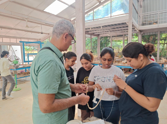 An extraordinary workshop on Toy making with Bamboo was led by the talented Ar. Kanwarjit Nagi—a master of bamboo craftsmanship. It was an immersive experience in the art of creating whimsical toys from this versatile material. The objective of the workshop was to Increase the capability of students through- Tactile experience, Imagination and Creativity, and Physical management of tools". A few interesting toy models of Busy Hens, Expanding Crocodile, Loop Glider, Magic Mill, Propeller, Puppeteer Whistle, etc were developed during the workshop.