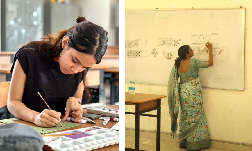 As part of Kalaakrti series during the EKAYANA fest at NIA, a vibrant workshop on Madhubani Art was conducted by artist Rashmi Kodikal. The session introduced participants to the traditional folk art of the Mithila region, known for its bold lines, intricate motifs, and natural colors. Rashmi shared the historical and symbolic richness of Madhubani, highlighting its deep connection with rituals, mythology, and daily life. The hands-on workshop was structured into four engaging segments—starting with an introduction to the art form, followed by guided practice of traditional motifs, border painting techniques, and culminating in the creation of personal artworks. Participants explored traditional themes using modern materials, bringing their own interpretations to life while staying rooted in cultural authenticity. The workshop offered a unique blend of storytelling, technique, and expression, celebrating one of India’s most cherished folk traditions and leaving participants inspired by its timeless beauty and relevance.