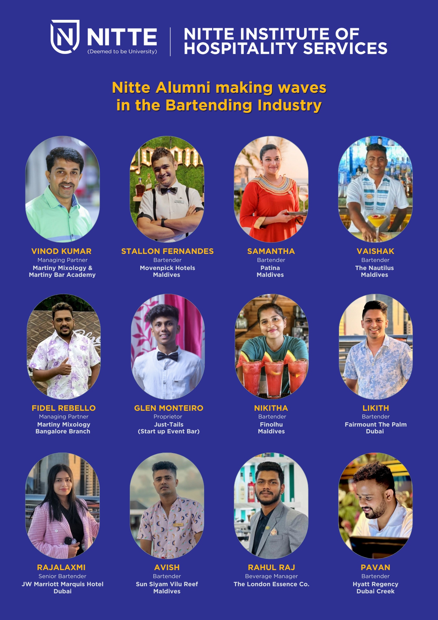 Meet the distinguished alumni of Nitte Institute of Hospitality Services (NIHS), a testament to the success and prestige of bartending as a career choice.