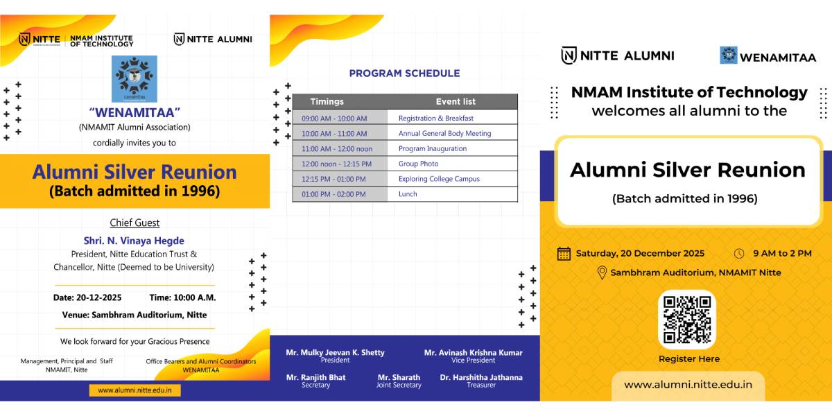 It helps every student to discover his/her strengths and provides opportunities to express it. The campus housed amidst nature is beautiful, sports facilities excellent, cultural events delightful, technical clubs challenging, and Placement opportunities, excellent. I am very grateful to my alma mater for being generous, kind, student-friendly and motivating. Where I work, NMAMIT is lauded for its contribution of ethically sound, honest and intelligent Engineers to the industry.