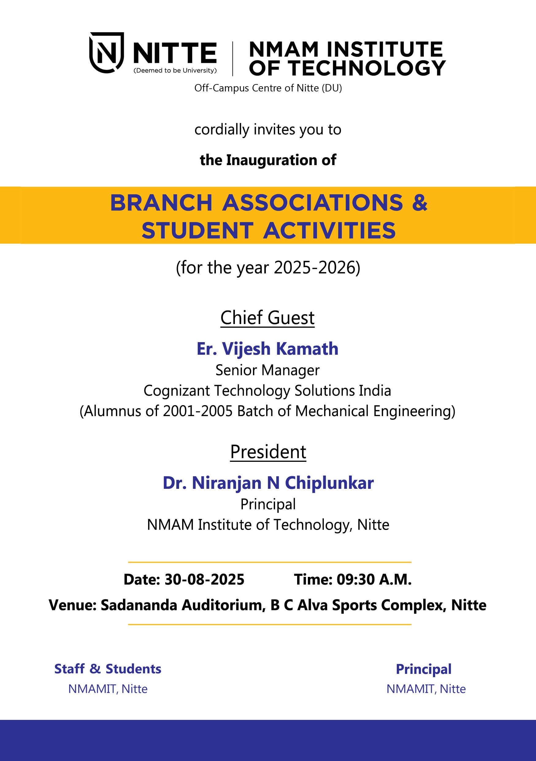 “ High performance environment @ NMAMIT nurtures individuals to explore possibilities; enhances knowledge and confidence for a successful professional career and equally successful life ”