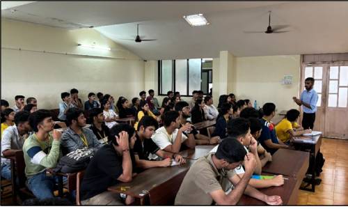 The hands-on LaTeX session provided practical experience in formatting equations, images, and references, helping students gain technical proficiency in academic writing. Coordinated by Mr. Shyam Kumar and Ms. Ashmi K. Kotian, the workshop received excellent feedback for its clarity, practical approach, and contribution to strengthening students’ research and writing competencies.