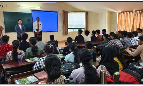 Cybersecurity students had the privilege of hosting Mr. Takashi Tsujiuchi, CEO of Findnext Co., Ltd., Japan, along with Prof. Harikrishna Bhat, Ms. Yasuko Sato, and Dr. Roshan Fernandes, Head of the Cybersecurity Department. The session offered valuable insights into Japan’s growing demand for cybersecurity professionals and highlighted global career opportunities in the field.