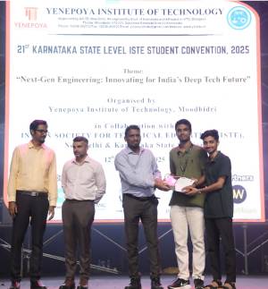 Aditya Bhat and Sujnan Devadiga of III-year Cybersecurity secured first place in the Technical Quiz conducted as part of the 21st Karnataka State Level ISTE Student Convention 2025 at Yenepoya Institute of Technology, Mangalore.