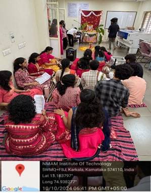 Active participation from II, III and IV year students ensured smooth organisation, supported by the Head of the Department, Dr. Murlidhara, and the faculty. The event concluded with prasada distribution and a cheerful group photo, strengthening bonds within the department. The celebration beautifully blended cultural tradition with teamwork, reminding everyone of the importance of balancing spirituality with academic and technological pursuits.