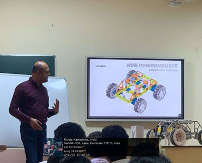 On 29 August 2024, the Department of Robotics and Artificial Intelligence organized a technical talk titled “Autonomous and E-Mobility Systems,” delivered by Mr. E. Murlikrishnan, Head of Autonomous and E-Mobility at Edutech India Pvt. Ltd. The session, attended by faculty and 3rd and 4th year students, focused on the critical role of programming, particularly in C, Python, and C++, for both software and hardware development in the autonomous and e-mobility sectors