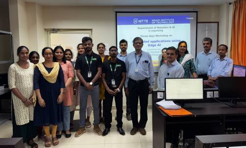 A three-day Faculty Development Program (FDP) on "Embedded Applications Using Edge AI" was organised from 25 - 27 November 2024 at NMAMIT, Nitte. Resource persons included Mr. Chiranjivi and Mr. Naveen Kumar from Digitod Technologies, and Mr. Ranjith Bhat from NMAMIT, Nitte.
