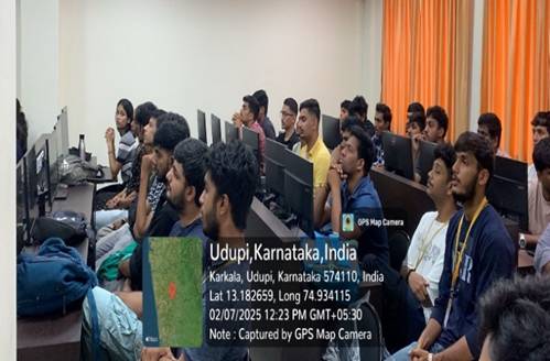 The event commenced with a warm welcome address delivered by Dr. Rashmi P. Shetty, Associate Professor, Department of Robotics and Artificial Intelligence. The workshop was formally inaugurated by the esteemed Principal, Dr. Niranjan N. Chiplunkar, in the presence of Dr. Muralidhara, Professor and Head of the Department of Robotics and Artificial Intelligence, and Mr. Ramesh Kumar, Senior Technical Consultant, ARK Infosolutions Pvt. Ltd., Bengaluru.