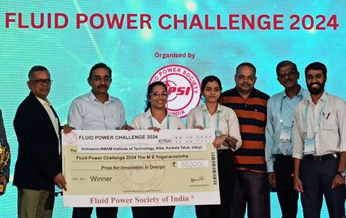 Ms. Aditi Pai K and Ms. Vaishnavi Pai K, final-year students from the Department of Robotics and Artificial Intelligence, have secured first place at the prestigious national-level innovation contest, The M. S. Yoganarasimha Prize for Innovation in Design, organized by the Fluid Power Society of India. Their award-winning project, titled “Design, Development, and Validation of a Pneumatically Actuated Inchworm Robot,” showcases cutting-edge innovation and engineering excellence. The project was successfully completed under the expert guidance of Dr. Muralidhara, Professor and Head of the Department of Robotics and AI, bringing great recognition to the department and the institution.