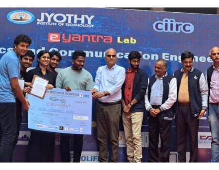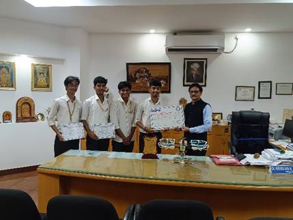 Mr. Ausaaf, Mr. Deekshith, Mr. Madhwesh, and Mr. Tarun showcased exceptional talent at Robothon 2k24, held at Jyothy Institute of Technology, Bengaluru. The team secured second place in the competition, standing out among numerous participants with their innovative and precise robotics solutions. In recognition of their achievement, they were also awarded a cash prize of ₹20,000, celebrating their hard work, creativity, and teamwork in this prestigious event.