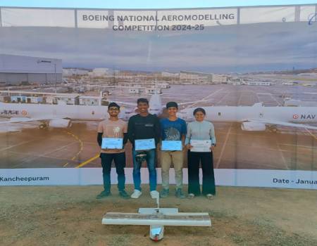 Mr. Shreyas (NNM23RI057), a fourth semester student, and his team achieved an impressive third place at the prestigious Boeing National Aeromodelling Competition held at IIT Bombay on 29 December 2024. The event challenged participants to design and fabricate a radio-controlled (RC) aircraft capable of lifting the maximum payload while adhering to a strict thrust-to-weight ratio of less than one. Through multiple design iterations, simulations, and test flights, Shreyas’s team developed an optimized fixed-wing aircraft that demonstrated excellent lift, balance, and structural efficiency. The judges praised their innovative approach, flight stability, and effective payload management, recognizing the team’s outstanding teamwork, technical skill, and problem-solving abilities in the demanding field of aeronautical engineering.