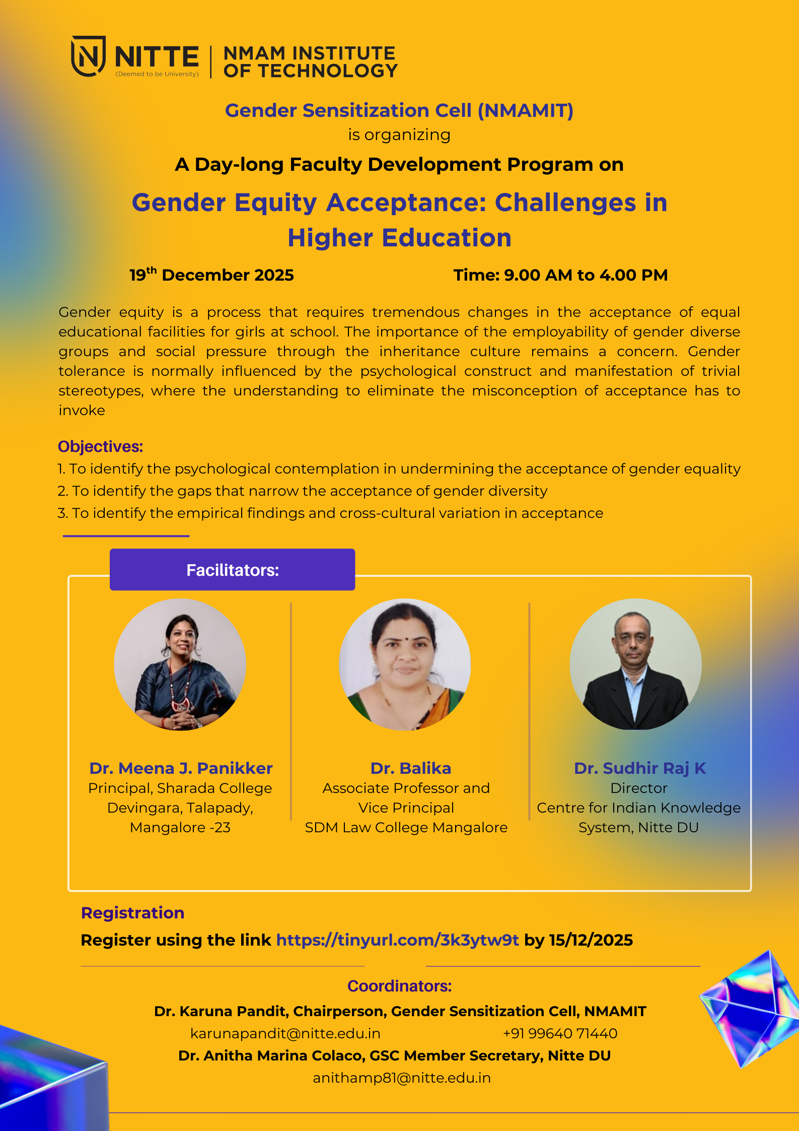 NMAMIT continuosly supports students by mentoring and counselling from the time of their entry to exit. They also have strict policies against ragging and sexual harassment to provide a safe eco space for growth of all individuals.