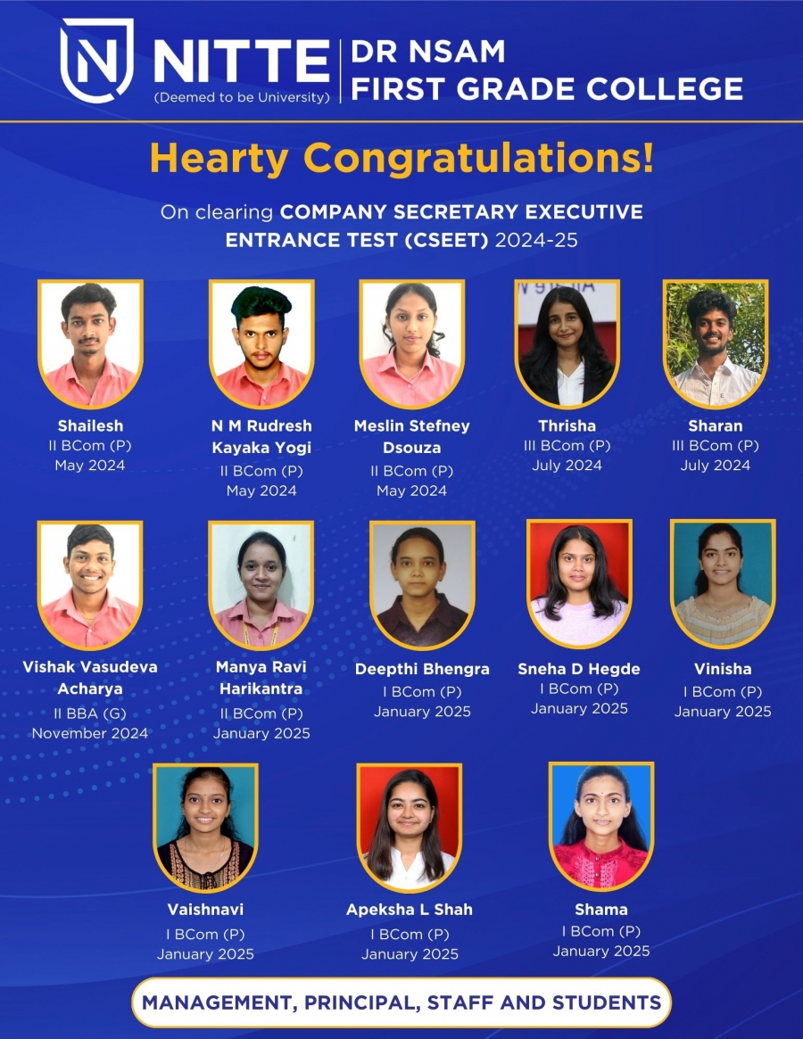 The annual Day of the college was celebrated on 10 March 2020. Dr. P., Subramanya Yadapaditya, Honorable Vice-Chancellor, Mangalore University, was the chief guest. On this occasion, he addressed the students and said, "There are no shortcuts to any place worth going. Hard work and dedication are the only mantras for success". Dr. VeenaKumari B.K., Prof. Niranjan N., Chiplunkar, Principal NMAMIT, Nitte, Mr. Ramesh M., Mr. VigneshShenoy, and Mr. Goutham, were also present. Various Special pr...